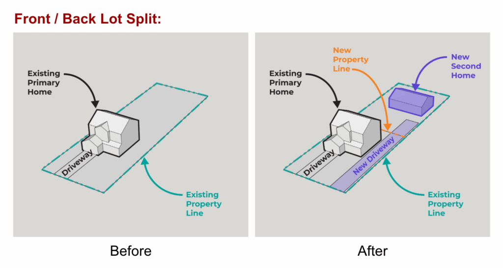 Allowing homeowners to split their lots so we can build more homes on less land is a key strategy for reducing housing costs and increasing the number of homes in existing walkable neighborhoods – a win for housing affordability, the economy, and the environment.